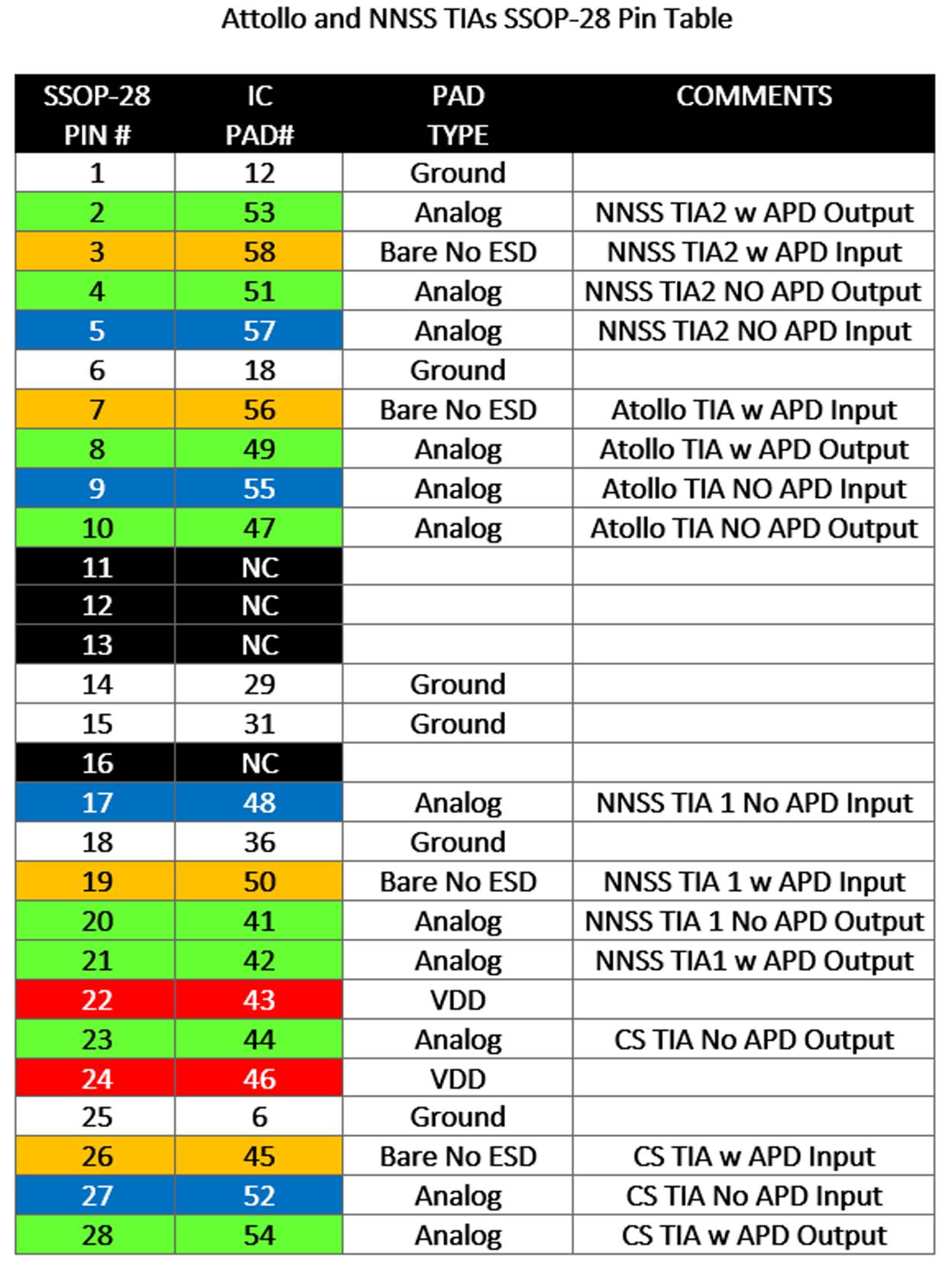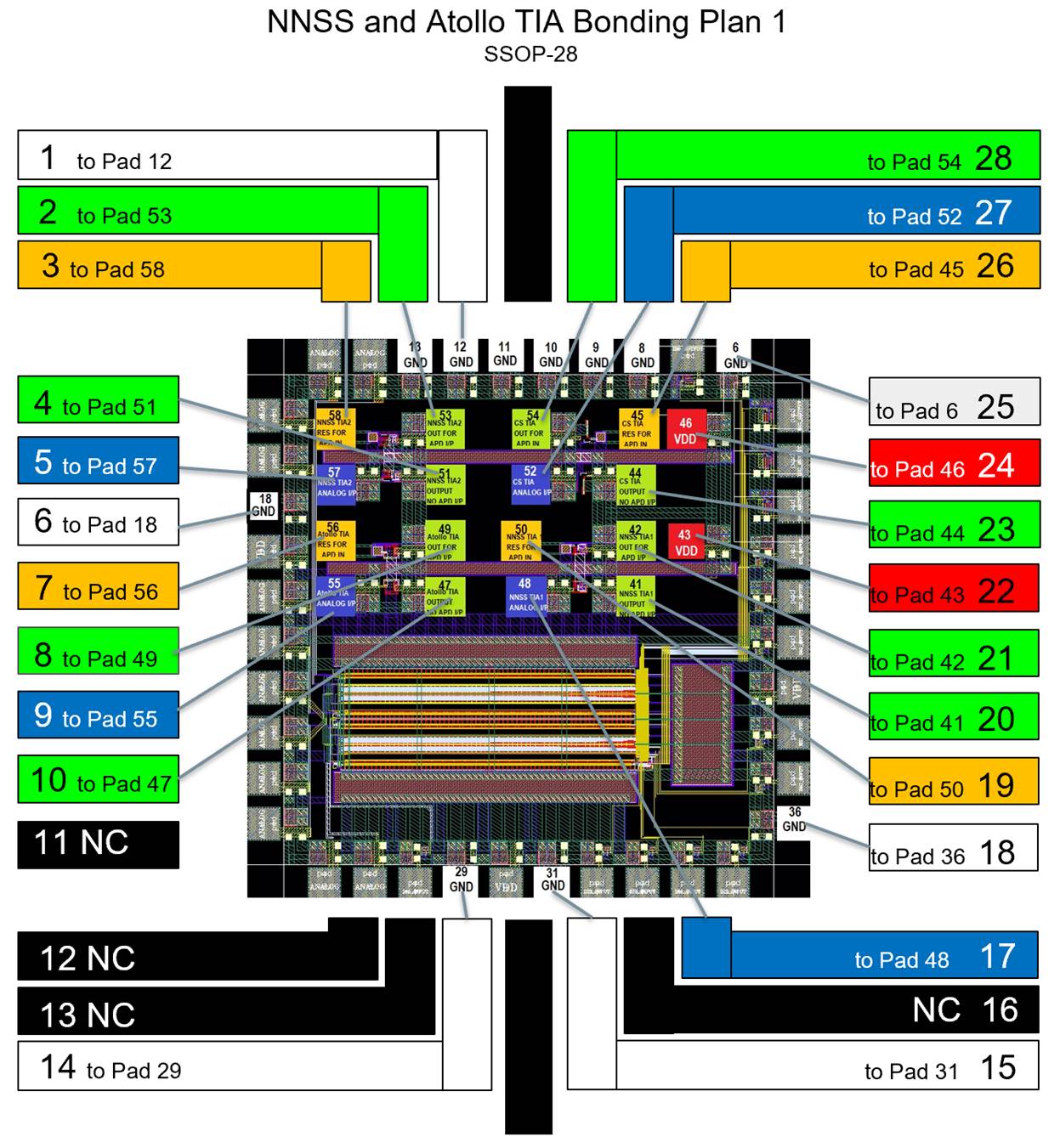 TIA Bond Plan and Chip to Package Pinout (Daniel’s 1st Wire Bond Plan)