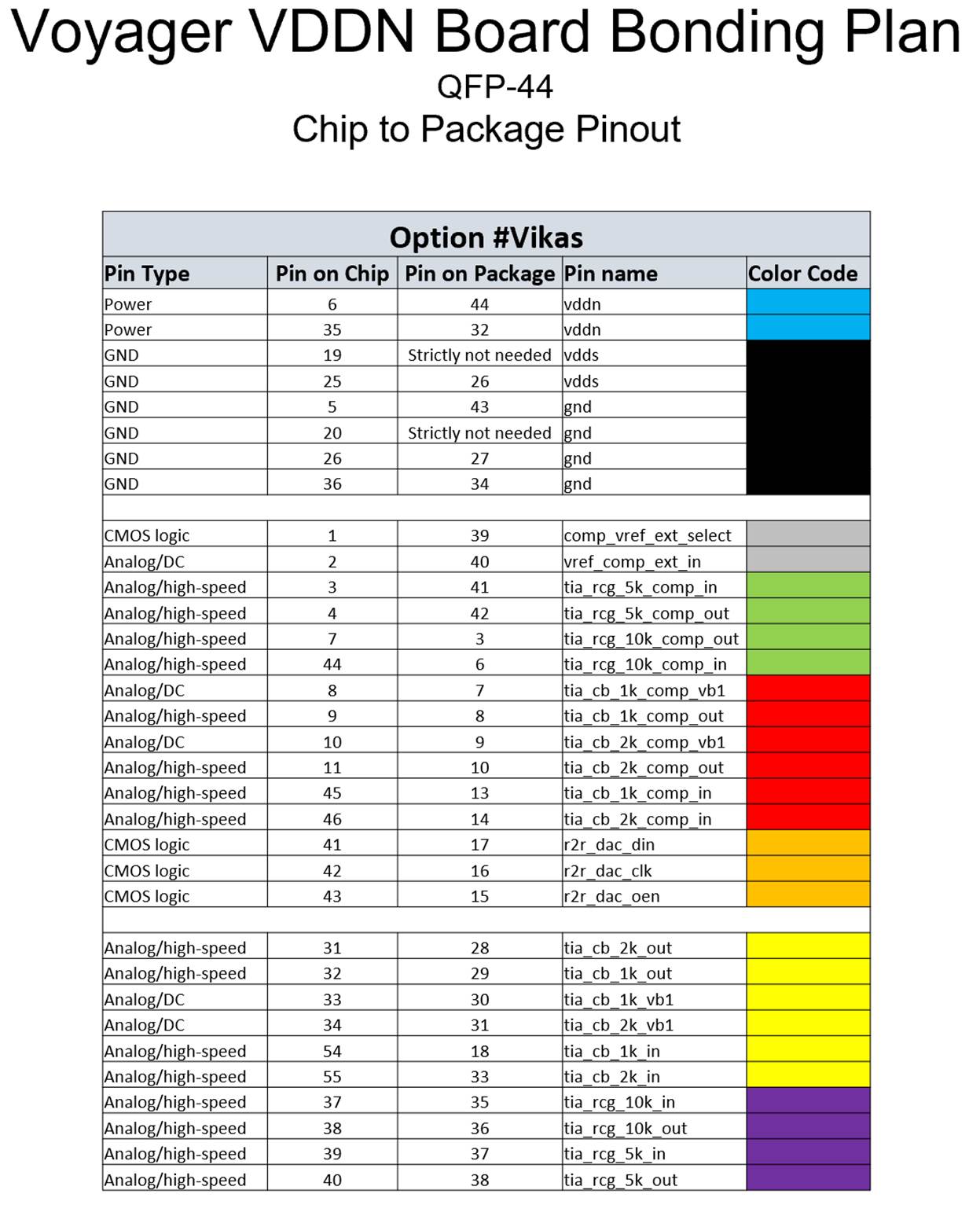 Voyager VDDN Bond Plan and Chip to