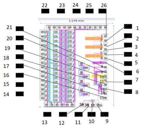 Below is the chip this board was made to test. To the right is the bonding diagram of the chip/board.